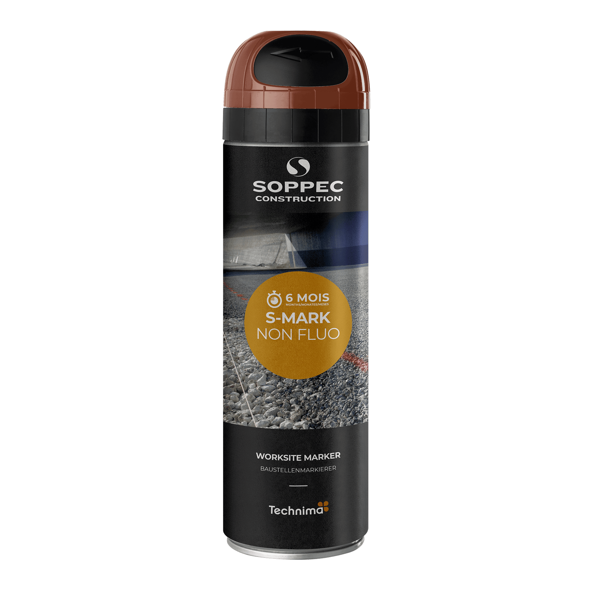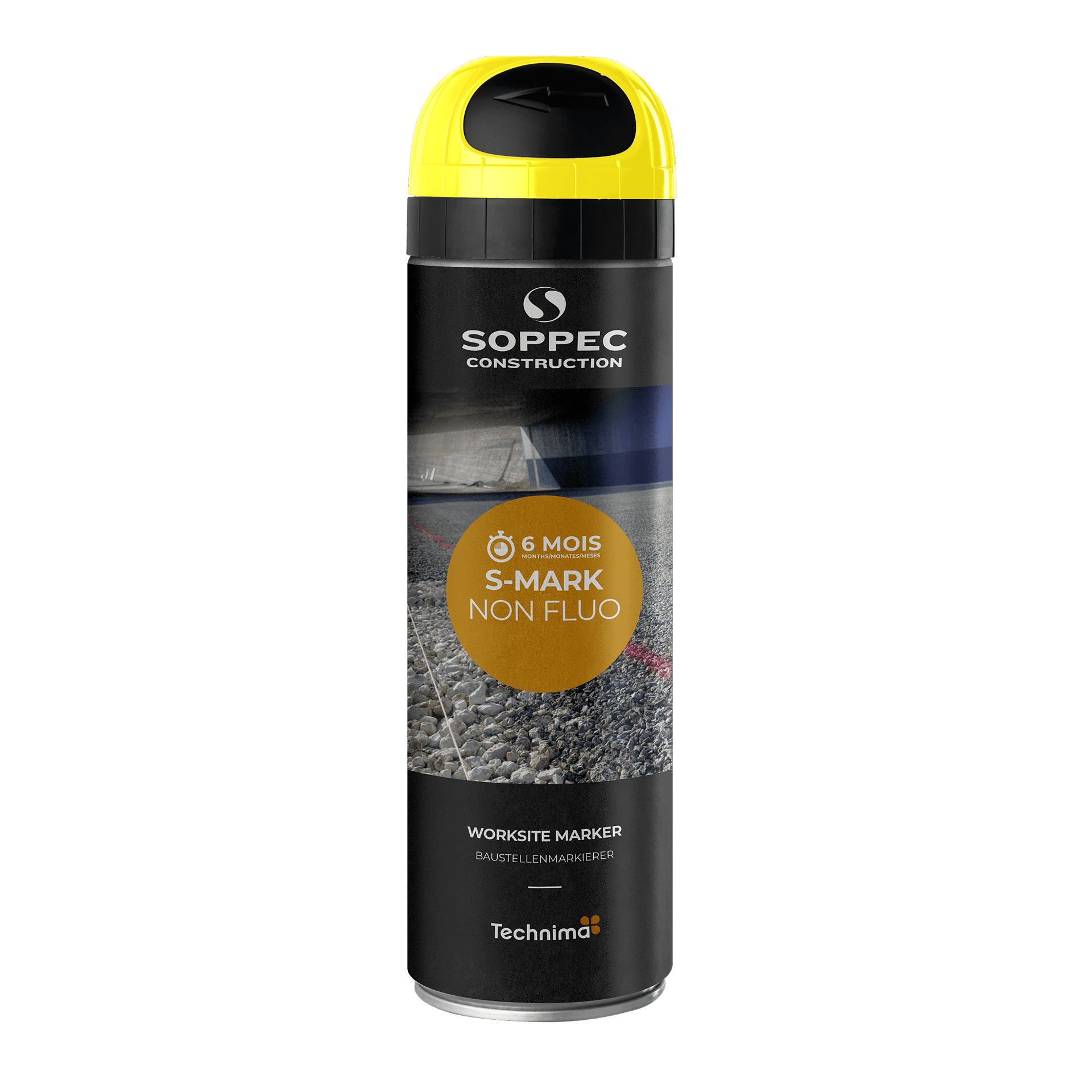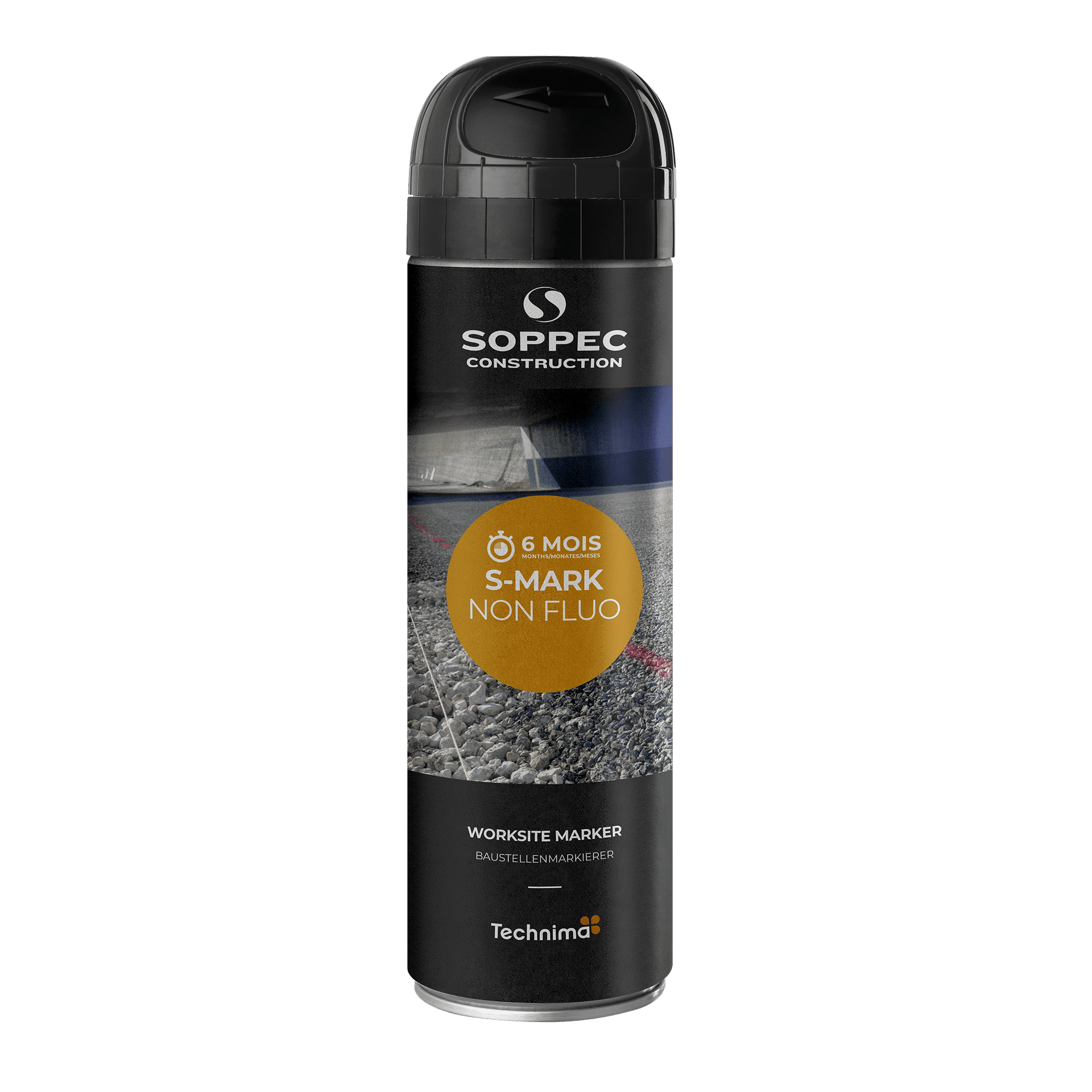 S MARK NON FLUO jest stosowany jako dodatek do świecącego sprayu S MARK FLUO, szczególnie w przypadku oznaczeń, które nie wymagają trwałości dłuższej niż sześć miesięcy. Nadaje się również do zakrywania oznaczeń (kolor czarny). Jest łatwy i bezpieczny w użyciu, posiada opatentowaną nasadkę ochronną „TP”.