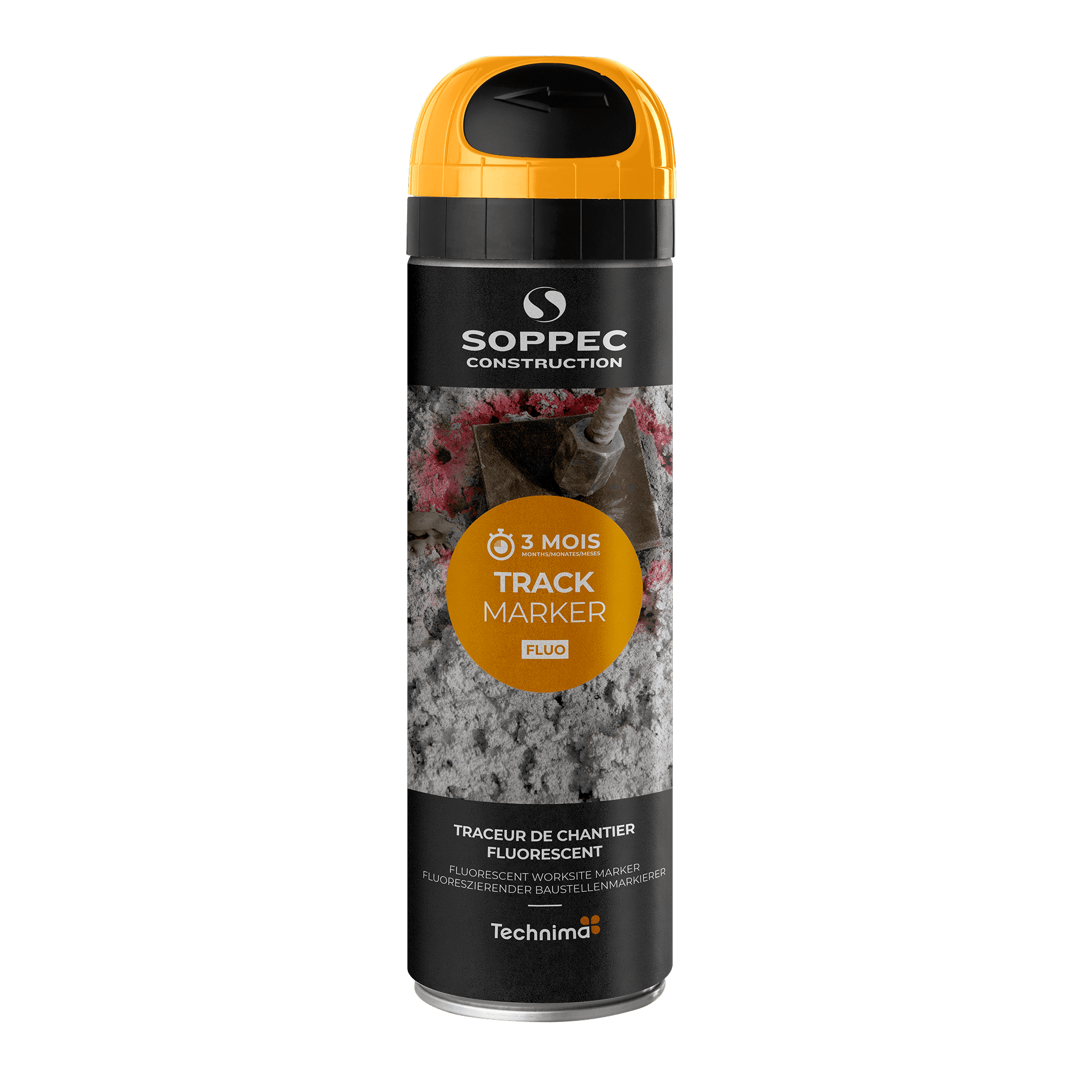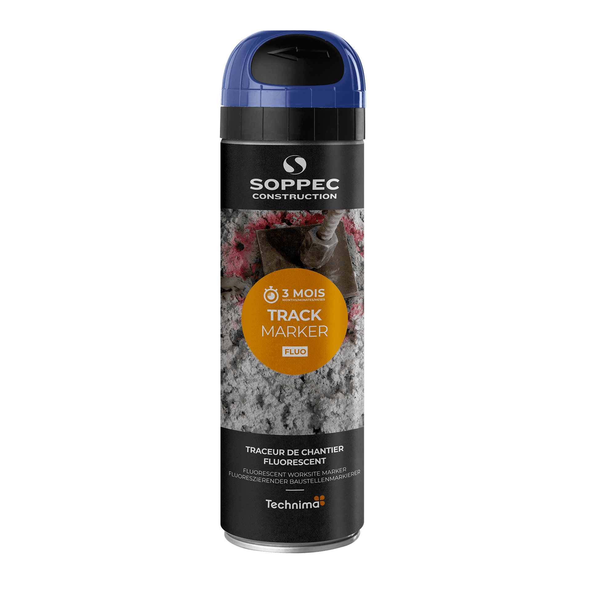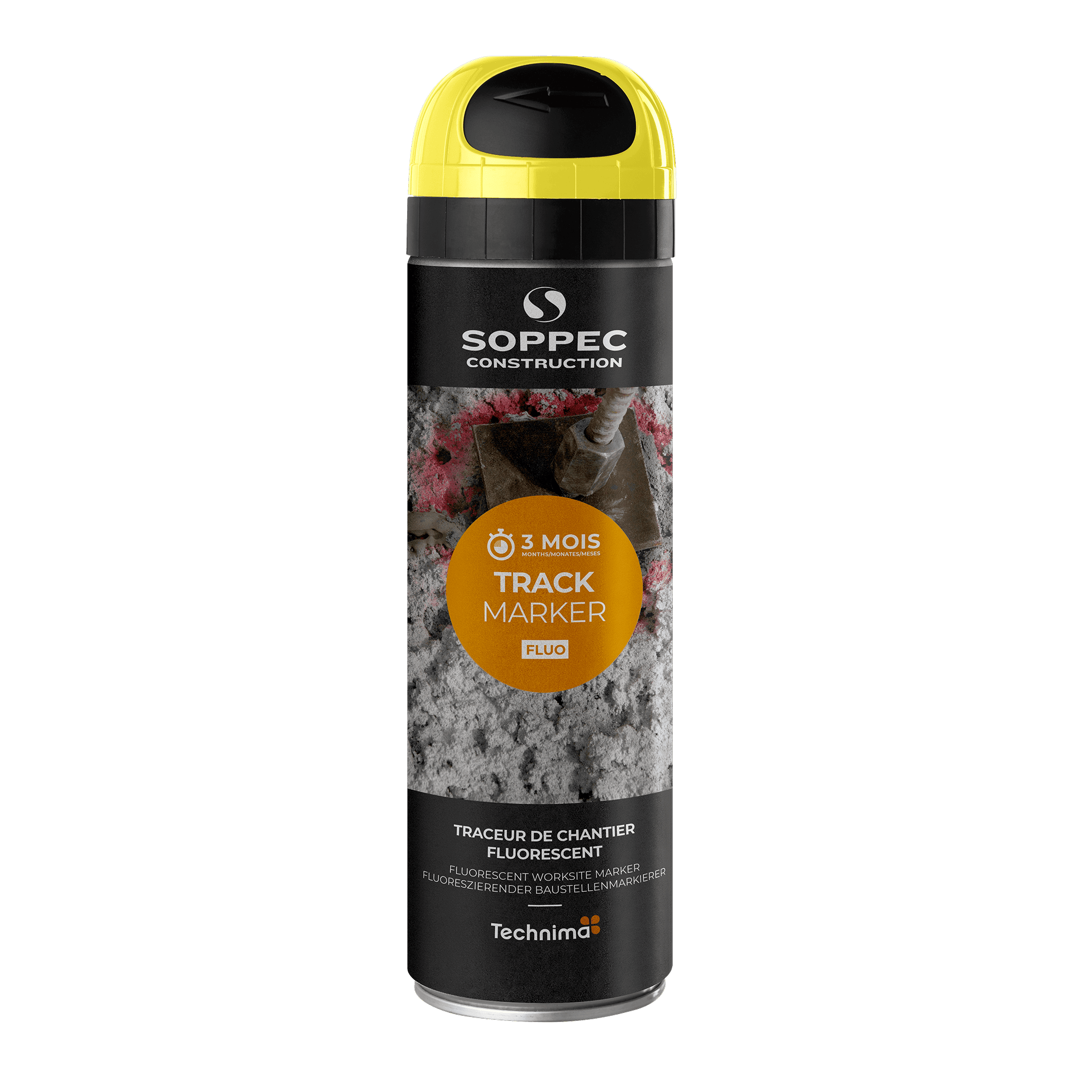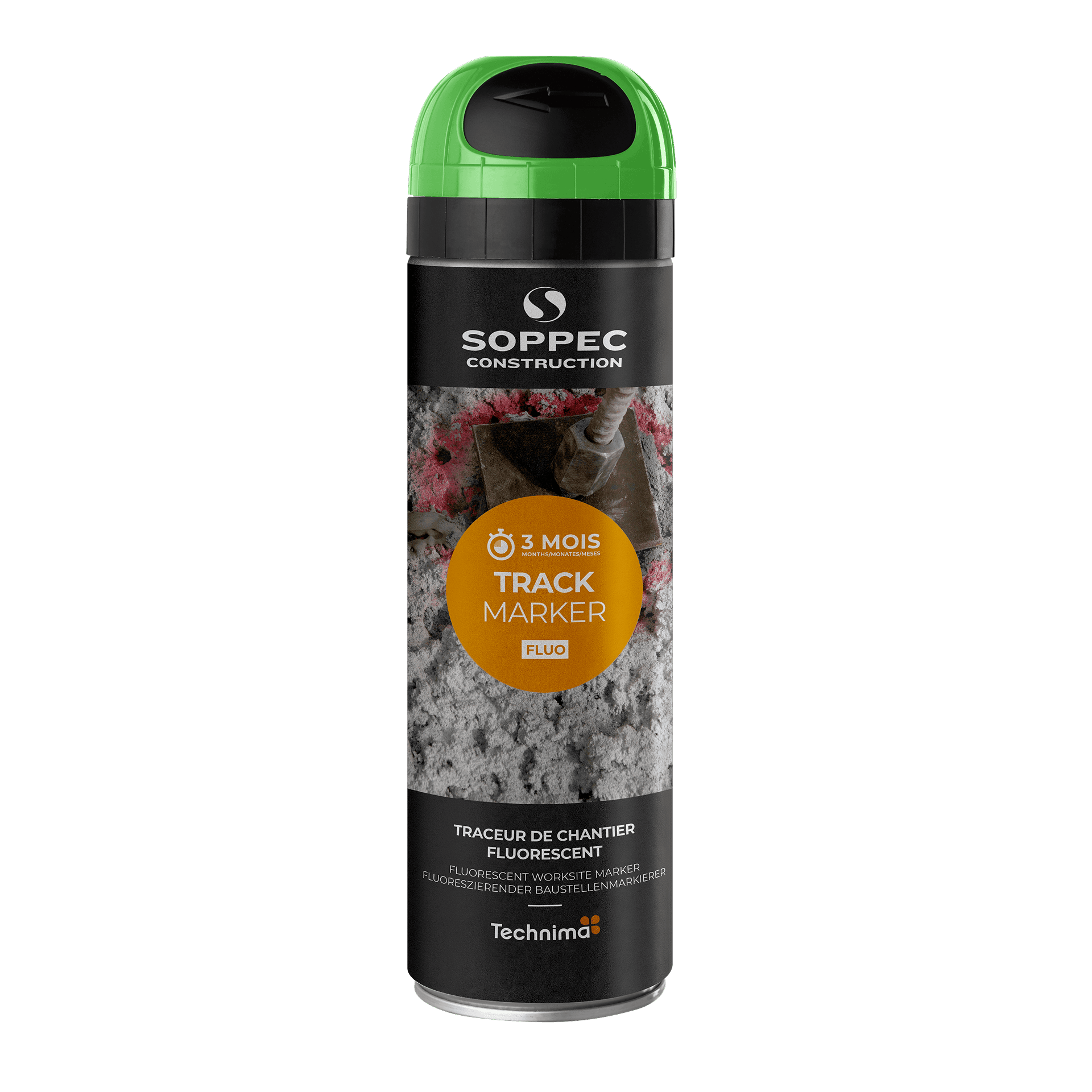 TRACK MARKER to fluorescencyjna farba w sprayu przeznaczona do tymczasowego znakowania widocznego do 3 miesięcy. Idealna do stosowania na placach budowy, w pracach krajobrazowych i robotach drogowych, gdzie nie jest wymagana wysoka trwałość. Wyposażona w opatentowaną nakrętkę bezpieczeństwa „TP”, zapewniającą większe bezpieczeństwo i precyzję.